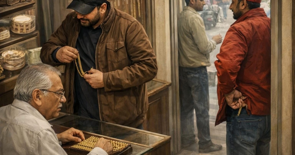 - मौका मिलते ही: अंदर मौजूद युवक ने 80 ग्राम से अधिक वजन की चेन उंगलियों में दबाकर जेब में रख ली।